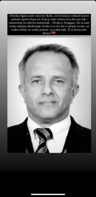 - Očinska figura naše osnovne škole, čovek koji je svakom barem jednom uputio lepu reč, koji je znaop imena svoj deci, pa čak i onima koji su odavno maturanti. Hvala ti Dragane, što si nam svima ulepšao školovanje, hvala ti za sve što si učinio za nas, za svaku utehu, pomoć, za svaku šalu. Ti si heroj naše hržave - piše u objavi na Instagramu.