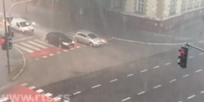 SNAŽNO NEVREME PARALISALO GRAD U SRBIJI! Automobili stoje, led udara po vozilima (VIDEO)