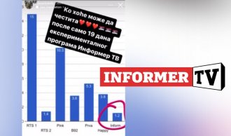 Pre tačno 19 dana zvanično je počela sa radom televizija Informer, tačnije eksperimentalni program. Nakon veoma kratkog perioda, rezultati su neverovatni, te smo se već juče, 18. juna, našli na samom vrhu lestvice gledanosti.