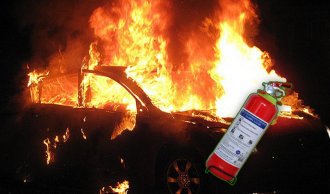 Dogodi se na putevima, naročito vrelih letnjih dana, da se automobil tokom vožnje zapali, posle čega ili totalno izgori, ili prisebni vozač uz pomoć kolega sa druma protivpožarnim aparatom ugasi vatru i umanji štetu i vožnju ostalima učini bezbednom.