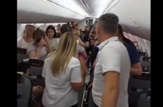 Naime, dok je žena prolazila kroz prolaz aviona zastala je pored muškarca u bež majici, nešto mu dobacila, a onda čak deluje i da ga je neutvrđenim predmetom gađala. Muškarac je u tom trenutku podigao ruka kao da će je udariti, međutim do fizičkog kontakta nije došlo.