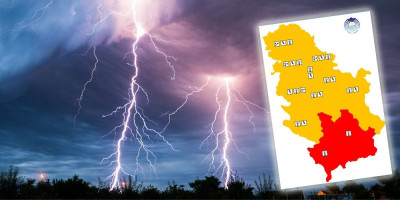 Crveni meteoalarm važi za jug Republike Srbije i on predstavlja da je vreme veoma opasno. Prognozirane su naročito opasne vremenske pojave, a takvog su intezitetaa da mogu prouzrokovati veliku materijalnu štetu i biti veoma opasne po bezbednost ljudi i životinja. Treba se često informisati o detaljima očekivanih meteoroloških uslova i rizika. Slediti naredbe i savete nadležnih državnih službi.