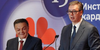 Predsednik Srbije Aleksandar Vučić prisustvovao je danas Svečanoj akademiji povodom 45 godina Instituta za kardiovaskularne bolesti "Dedinje", koja je počela u beogradskom hotelu "Metropol Palas".