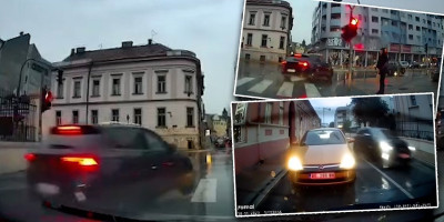 Na snimku se vidi automobil koji preko pune linije pretiče dva vozila koja čekaju da im se upali zeleno svetlo na semaforu, dakle nadomak raskrsnice, a onda "proleće" na crveno!