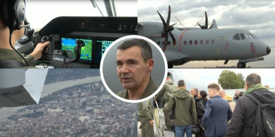 - Dostigli smo maksimalnu visinu za danas, radi vaše bezbednosti - rekao je potpukovnik Goran Brkić, komandat 138. transportne avijacijske eskadrile, koji je bio na čelu letelice.