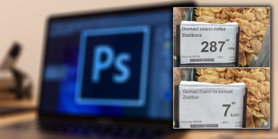 Sa originalne slike, na kojoj je istaknuta cena od 287,40 za 100g proizvoda, uklonjeni su brojevi 2 i 8, a u nazivu i količini artikla je uklonjeno "rinfuz" i dodato "na komad".