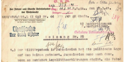- Ovaj dokument je "iscureo" iz Abvera verovatno posle rata. Ono što znamo, jeste da je Hitler i na usmenom sastanku sa vojnim vrhom, pre slanja Direktive, dao nalog da se Beograd sravni u znak osvete za Prvi svetski rat. Istovremeno, nalog je bio da Atina ne bude maltene ni taknuta. Čak je rekao kako mu je žao što mora da ratuje protiv "viteškog grčkog naroda" - objašnjava direktor Muzeja.