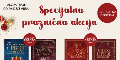U raskošnom izdanju knjige Srpske slave i praznici sabrano je sve što treba da znate o svom duhovnom nasleđu. Njen sadržaj vam omogućava da na pravi način očuvate svoju porodičnu tradiciju, dok će detaljni i nadahnuti opisi koji prate živopisne fotografije i ilustracije u knjizi Srpske crkve i manastiri čitaocu u potpunosti dočarati lepotu naših svetinja.
