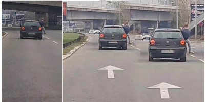 Na njemu je prikazan muškarac koji doslovno visi iz automobila u pokretu. Kao što se vidi, muškarac sedi na otvoru od prozora na zadnjem sedištu i "uživa" u vožnji.