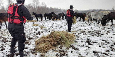 Dirljive scene na Krčedinskoj adi: Specijalistički timovi doneli hranu krdu gladnih konja i krava (FOTO)