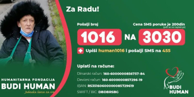 Možete uplatiti sredstva na račun Fondacije "Budi human" ili jednostavno poslati poruku sa sadržajem 1016 na broj 3030.