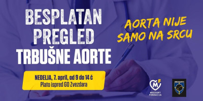 Fondacija Mozzart u saradnji sa GO Zvezdara, na platou ispred ove lokalne samouprave, organizuje besplatne preglede trbušne aorte u nedelju, od 9 do 14 časova.