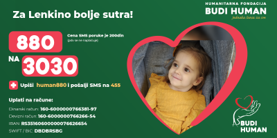 - Zamolio bih Vas u lično ime i u ime male Lenke za pomoć Vašu,Vasih i zajedničkih poslovnih partnera, kolega i svih koji su u mogućnosti da pomognu kao firme i pojedinci. Naime maloj Lenki je potrebna pomoć od 20.000 evra kako bi nesmetano mogla da živi i da se kreće. Zahvaljujem se unapred na trudu za koji se nadam da cete uložiti pozvati sve kojih se setite da zajedno učestvujemo u humanoj akciji kao društveno odgovorni ljudi i kompanije. Hvala jos jednom - šalju prijatelji porodice.