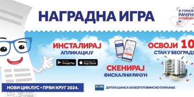 Novi ciklus nagradne igre "Uzmi račun i pobedi 2024" traje od 25. aprila do 8. juna 2024. Ukupan nagradni fond ovog kruga obuhvata 10 stanova u Beogradu, ukupne vrednosti od 1,9 miliona evra. Pet javnih izvlačenja se održava od 11. maja do 8. juna, a danas su izvučeni novi dobitnici stanova.