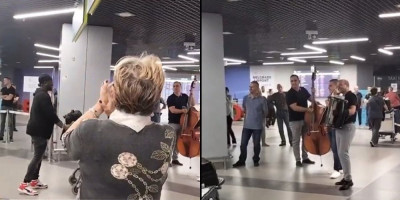 Opštenarodno veselje uz harmoniku, gitaru i kontrabas na Aerodromu Nikola Tesla! Neko je odlučio da svoje bližnje tako iznenadi i dočeka uz pesmu, ali su se izgleda proveselili svi prisutni.