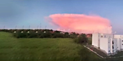 Kako se vidi na snimku, na nebu je veliki roze-crvenkasti oblak. Mnogi su mislili da je ovo posledica nevremena, međutim, ovako nešto do sada nije viđeno.