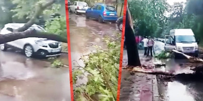 Drveće je palo preko parkiranih automobila, a ulica je bila blokirana za saobraćaj i pešake.
