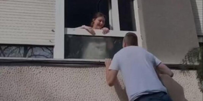 Na snimku se vidi momak kojem drugari, držeći ga za noge, pomažu da se popne do prozora gde se nalazi devojka. Ona svog izabranika gleda iznenađeno i sa širokim osmehom na licu.