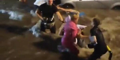 Zastrašujući snimak spasavanja ljudi iz poplavljene ulice objavljen je na mreži "X". Kako se može videti, grupa ljudi pokušava da pređe sa jedne strane ulice na drugum. Međutim, voda je nadošla i toliko brzo teče da žene gube ravnotežu i padaju. Jednu ženu je muškarac držao za ruku ali je voda toliko brzo tekla da je žena na kraju završila pod vodom.