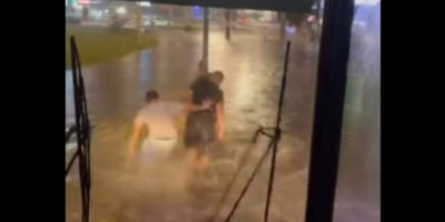 Nako toga ušli su u autobus koji nije mogao da se kreće zbog bujice koja je tekla ulicama