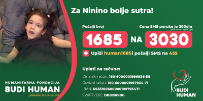 Zato, apelujemo na sve ljude dobrog srca da se pridruže našoj misiji i pomognu Nini! Svaka donacija, ma koliko bila mala, može da napravi ogromnu razliku u njenom životu. Zajedno možemo da omogućimo Nini da dobije neophodnu terapiju i podršku, i da napreduje koliko god je to moguće.