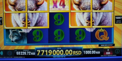 Srećni dobitnik, igrajući Golden Rumbling Run na slot aparatu, prvo je osvojio 1.902.200 RSD na bet od 1.000 RSD. U tom trenutku on je zastao, razmišljajući da prekine igru, ali imao je osećaj da sudbina želi drugačije. Odluka je pala, prsti su krenuli, a 20 minuta kasnije, svetla su se zaiskrila, i mašina je pokazala neverovatnih 7.719.000 RSD.