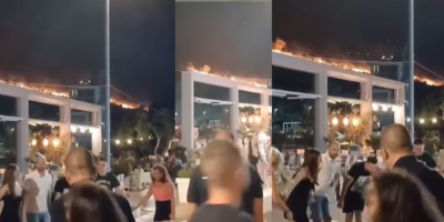 Kako se vidi na snimku koji je na Instagramu objavio 192, požar je gutao sve pred sobom na planinama iznad Sutomora, dok je grupa mladih bezbrižno igrala kolo.