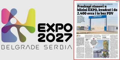 - Povodom teksta koji je objavljen u današnjem print izdanju lista „Nova“ pod nazivom „Preskupi stanovi u blizini EXPO, kvadrat i do 2.400 evra i to bez PDV“, preduzeće EXPO 2027 d.o.o. želi da se ogradi i istakne da privatni stambeni kompleks EXPO Residence nema apsolutno nikakve veze sa Specijalizovanom izložbom EXPO 2027 Beograd, niti je opseg našeg rada. Smatramo da je tekstom koji je obuhvatio i ilustraciju fotografije sa ulaza na EXPO gradilište dovedena javnost u zabludu i da je stečen utisak da će stanovi u okviru EXPO manifestacije biti sa visokim cenama.