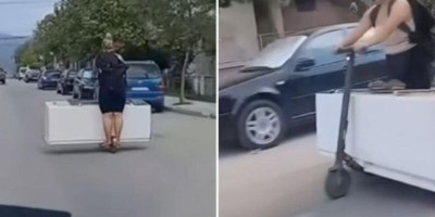 Žena na električnom trotinetu u Vranju vozila je frižider, a video-snimak njene vožnje pojavio se na društvenim mrežama i oduševio je korisnike.