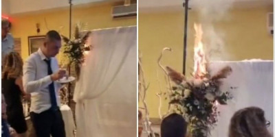 Mladenic iz Srbije, a i svadbene zvanice, doživeli su neprijatnost na proslavi venčanja kada su prskalice koje su stajale pored dekoracije tokom sečenja mladenačke torte zapalila deo postavke.