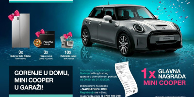 Gorenje vam pruža šansu da osvojite MINI Cooper i brojne vredne nagrade. Sve do 21. oktobra 2024. godine, kupovinom i registracijom bilo kog velikog kućnog aparata iz Gorenje asortimana, automatski se kvalifikujete za učestvovanje u nagradnoj igri.