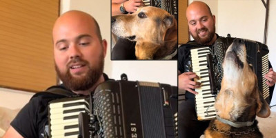 U prvi mah delovalo je da je slučajno, a kada je isto to ponovio, njegov ljubimac ponovo je počeo da zavija na prve taktove. I, ne to nije zavijanje, verovali ili ne, Laki peva uz harmoniku i pomno prati taktove na harmonici.
