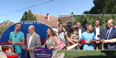 - Od ukupno 134 kupljenih kuća u opštini Nova Crnja, a to je izuzetno veliki broj, za mali opštinu kakva mi jesmo, eto poklopilo se da i dvehiljadita, seoska kuća bude kupljena u selu Aleksandrovo, za mladu, tročlanu porodicu Kantar, Miloša, inače iz Zemuna, njegovu suprugu Dijanu iz Srpske Crnje i njihovog tek rođenog sinčića Vasilija, koji sada ima godinu i po dana - naglašava predsednik opštine Nova Crnja, Dragan Daničić.