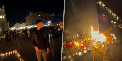 Veliki broj građana Novog Sada okupio se sa druge strane ulice koja gleda direktno na ruševine Železničke stanice ovog grada. Prilaze kako bi zapalili sveće za stradale, ostavljajući crvene i bele ruže na jednoj gomili.
