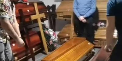 Momci zaigrali uz pesmu "Ustaj sine majka zove": Ništa ne bi bilo čudno da žurka nije počela u radnji pogrebne opreme (VIDEO)