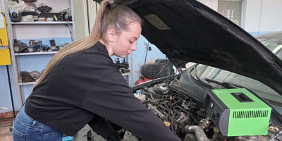 Petra Vulić (17) iz Niša jedina je devojka koja se sa svojim drugovima priprema za rad u auto-mehaničarskoj radionici na smeru za dijagnostiku na vozilima u ETŠ "Mija Stanimirović".