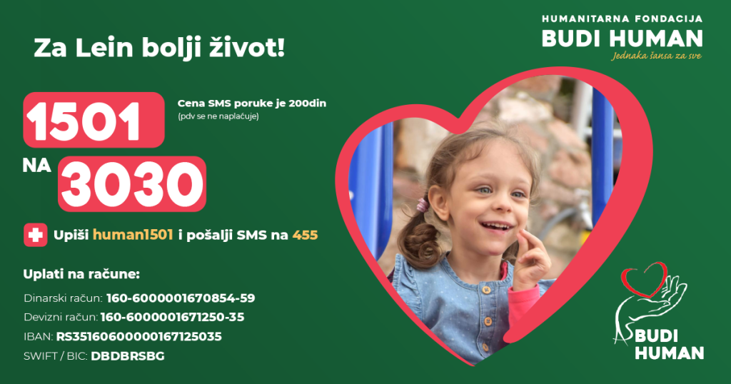 Pored uplate na žiro račun, otkriva Nikola, Lei možemo pomoći i slanjem SMS poruke 1501 na 3030.