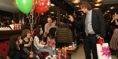 “Danas smo se okupili u Teatru Odeon, koji će od sada biti prostor, zajedno sa mojom Palatom, gde će se održavati akcije solidarnosti. Ove godine obradovaću vas sa duplim džeparcem. Jedan mudar čovek je rekao – Ne možemo birati gde ćemo biti rođeni, kada ćemo biti rođeni i u kojim okolnostima. Ne možemo birati roditelje, ni da li ćemo ih uopšte imati. Ali možemo birati kakvi ćemo biti ljudi. To najviše zavisi od vas, ali onda i od nas – društvene zajednice i o tome koliko ćemo brinuti o vama, biti solidarni i bar neke od bitnih trenutaka u toku godine obeležimo zajedno. Uvek počinjemo sa praznicima, onda već u februaru šaljemo vas na zimovanje, posle imamo zajednički rođendan, a nakon toga letovanje i polazak u školu. Imate mogućnost da imate godišnje besplatne karte za predstave u Teatru Odeon. Sve ovo što radimo zajedno je jako važno – jer koliko lepih trenutaka budete imali u detinjstvu zavisi direktno kakve ćete osobe postati i kakavu ćete ličnost izgraditi. Vas ne treba oblikovati, vas treba razumeti.” – rekao je Željko.