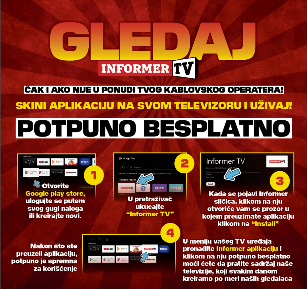 Informer televiziju možete pratiti uz bilo kog kablovskog operatera, jer za informisanost su potrebni samo Informer aplikacija, telefon i smart televizor!