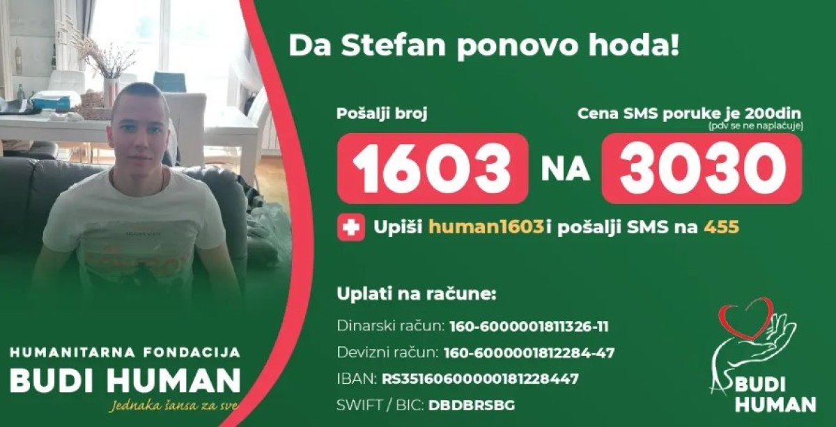 Stefan Maksimović (19) živeo je punim plućima, imao želje, snove i planove za budućnost, a onda ga je pad sa visine naterao na tešku bitku - da ponovo prohoda! Nakon gostovanja na Informer TV, deo novca je prikupljen i Stefan je uspeo na ode na rehabilitaciju, ali novca za nastavak lečenja manjka.