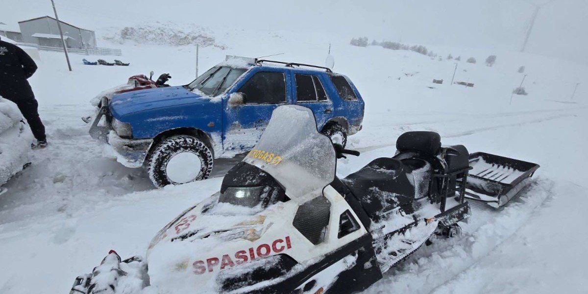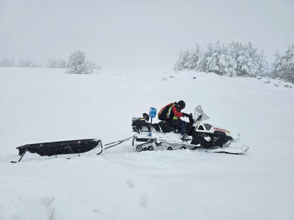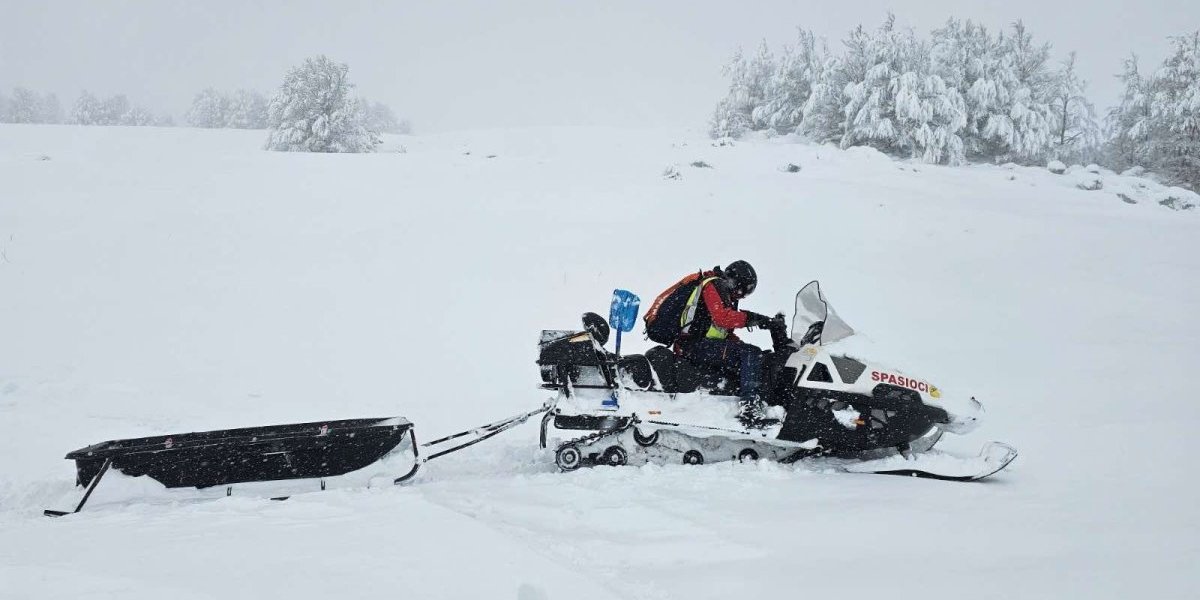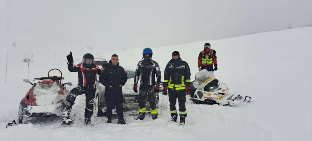- Jutros oko 4.30 smo dobili dojavu da se dvoje naših građana našlo zavejeno na Krnovu. Krenule su naše dve ekipe da ih evakušu, ali zbog jačine vetra i snega nisu bili u prilici da im priđu. Onda su još dve ekipe krenule motornim sankama do njih - rekao je Goran Tripković iz Službe zaštite i spašavanja Nikšić.