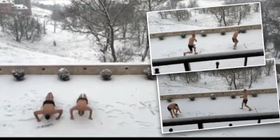Njima niske temperature očigledno ne mogu ništa, te su odlučili da u snegu uživaju na "ruski" način - bez odeće i bosi na -4 stepena Celzijusovih, koliko danas iznosi temperatura na Zlatiboru.