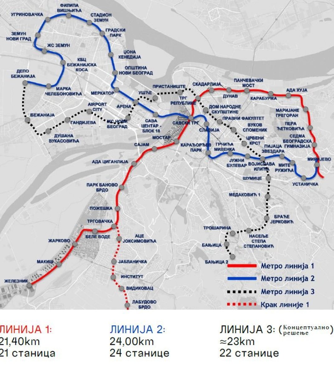 Dužina koloseka od tunela Vračar do stanice Karaburma iznosi 1.400 metara, od čega je dužina trase u tunelu 675 metara.