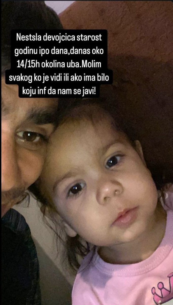 - Nestala devojčica starosti godinu i po dana, danas oko 14-15 časova, okolina Uba. Molim svakoga ko je vidi ili ako ima bilo kakvu informaciju da se javi - napisala je majka u apelu.