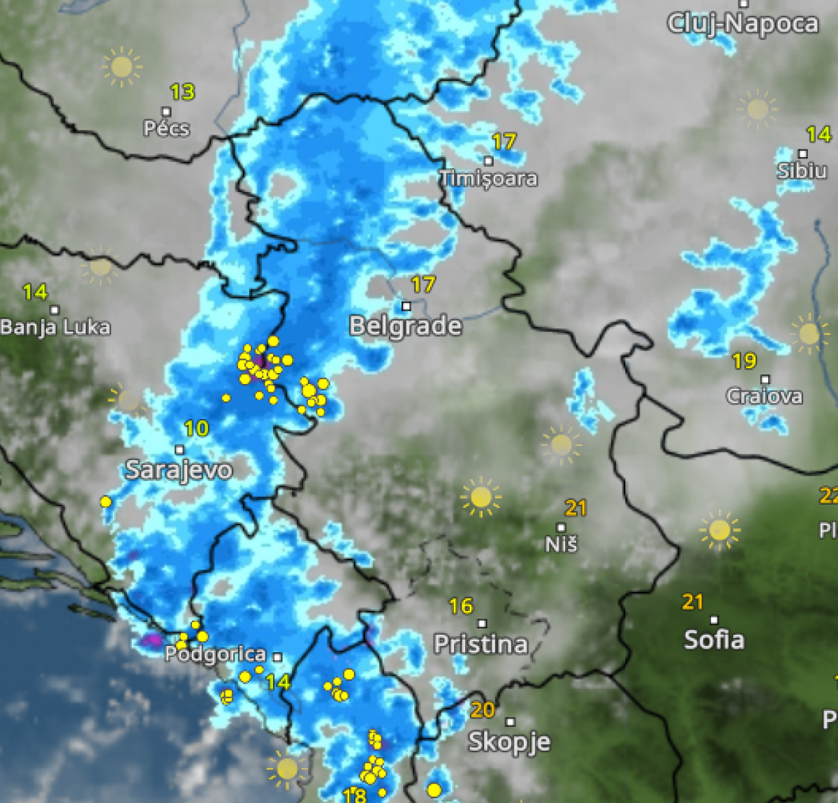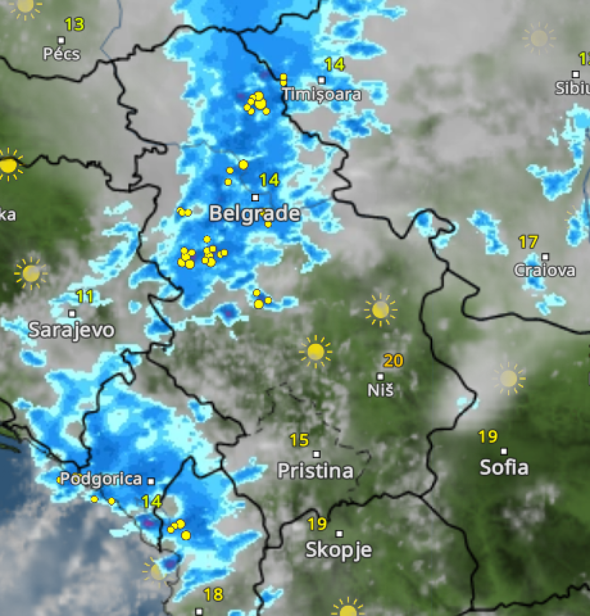 Republički hidrometeorološki zavod (RHMZ) izdao je najnoviju vremensku prognozu u kojoj navodi da nas već tokom ranih jutarnjih časova u većini krajeva Srbije očekuje kiša i lokalni pljuskovi, dok je i danas i sustra upaljen žuti meteoalarm.