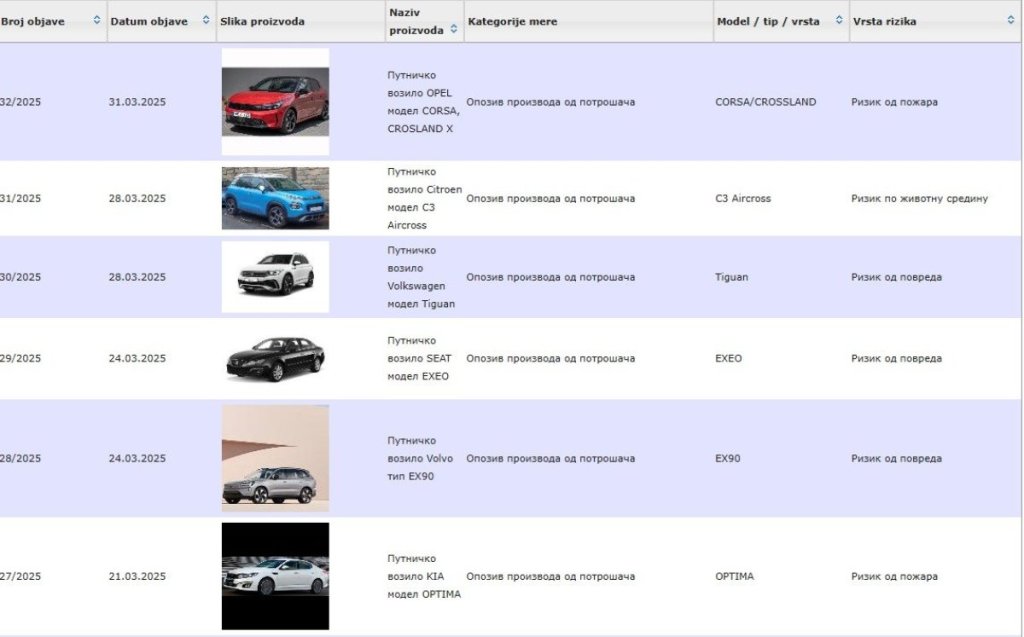 Putnička vozila robne marke OPEL model Corsa, Crossland X proizvedena u periodu od 08.10.2022. do 09.11.2022. godine, povlače se sa tržišta, navodi NEPRO.