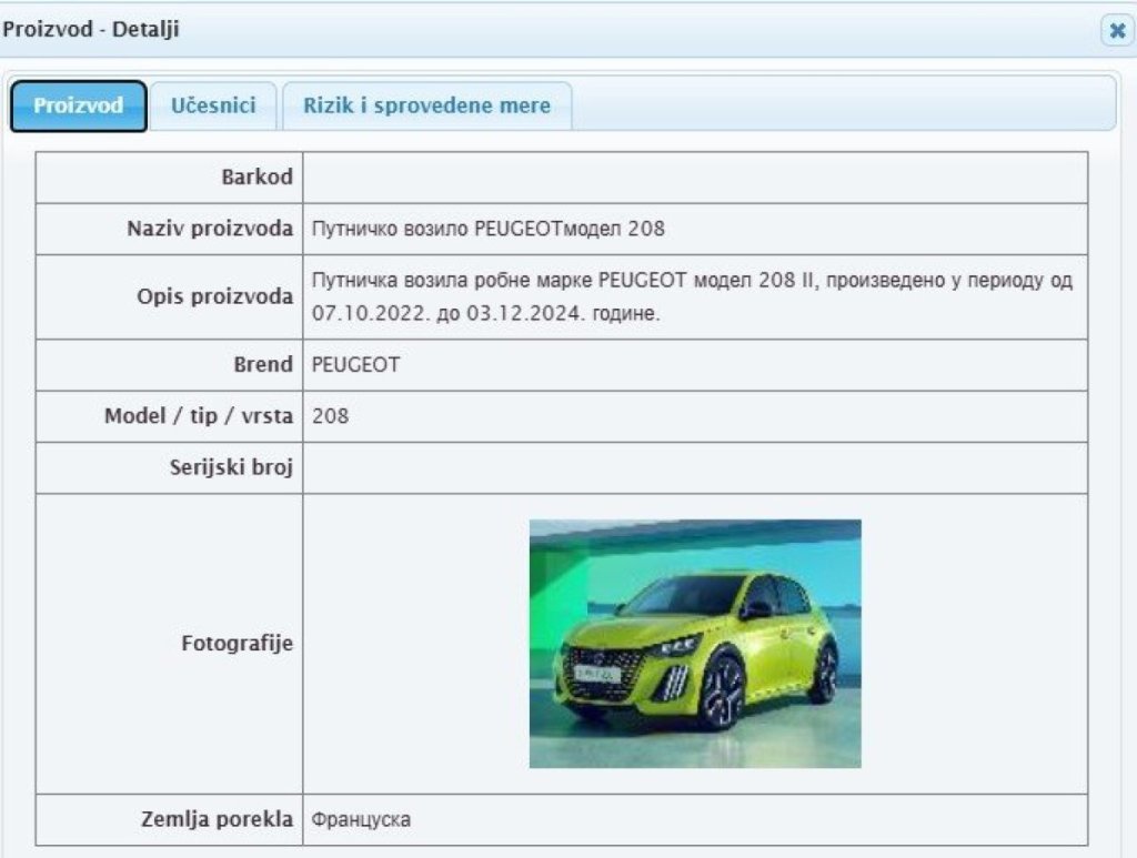 Putnička vozila robne marke PEUGEOT model 208 II, proizvedeno u periodu od 07.10.2022. do 03.12.2024. godine, piše u obrazloženju o povlačenju proizvoda.