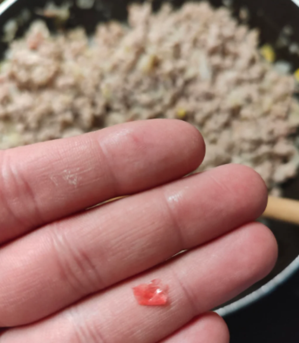 "Dođem kući, krenem da spremam ručak i primetim neke crvene flekice u mesu. Uzmem da pogledam šta je, kad ono – samlevena kesa ili neka druga plastika. Meso je bilo puno plastike, nije vredelo ni pokušavati da se izvadi" napisao je on na Redditu.