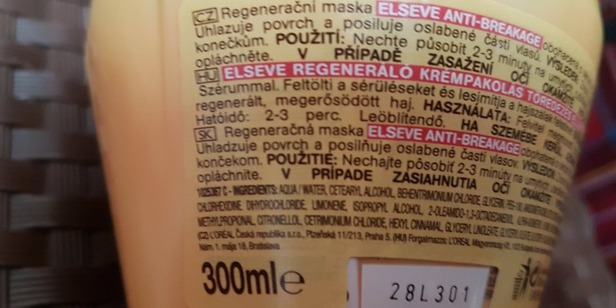 Kako se navodi, maska za kosu koju proizvodi L´oreal Paris, elseve anti-casse, za koju na pakovanju piše da obnavlja oštećenu kosu, nije bezbedna za upotrebu zbog hemijskog rizika.