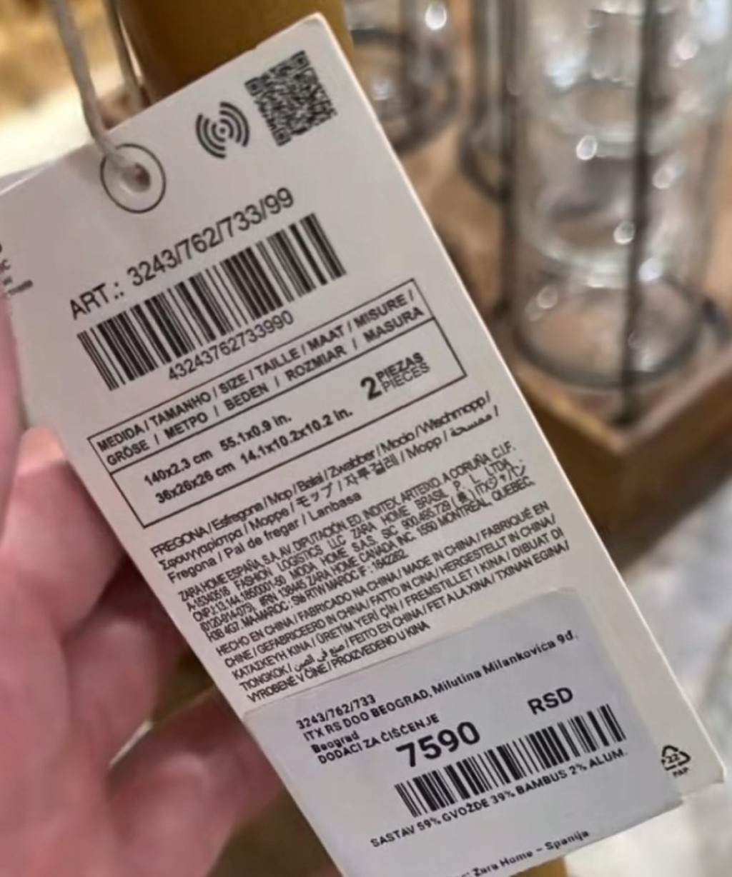 Prodavnice "Zara" i "Zara Home" već duže vreme su na lošem glasu zbog bezobrazno visokih cena, ali i kvaliteta koji je iz sezone u sezonu sve lošiji. Ovoga puta, potrošače je razbesnelo to što su među asortimanom uočili džoger i kofu za vodu po ceni od 7.590 dinara.